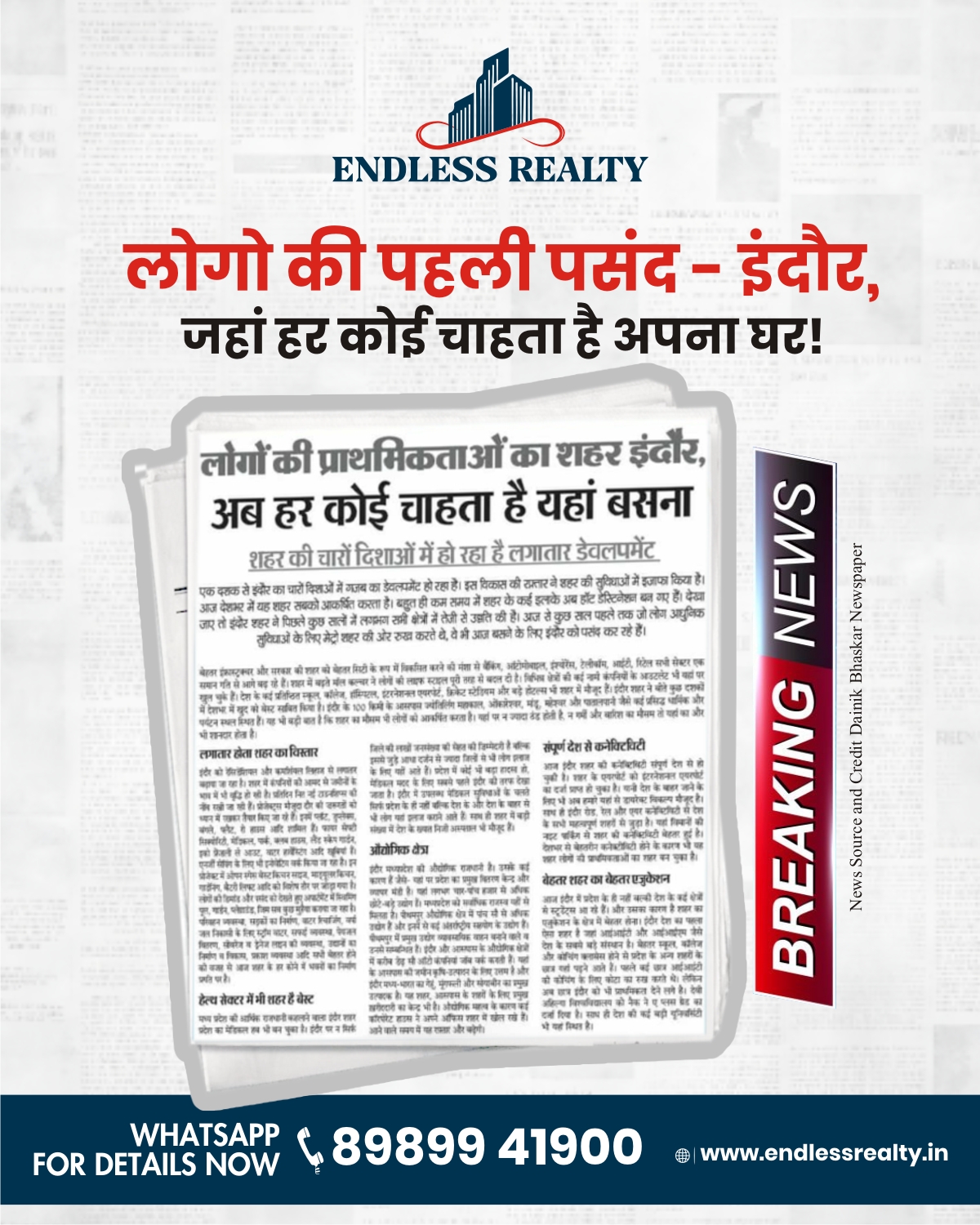 Your Dream – Our Commitment. Endless Possibilities for Smart Investors to get Prospering Properties in Indore.